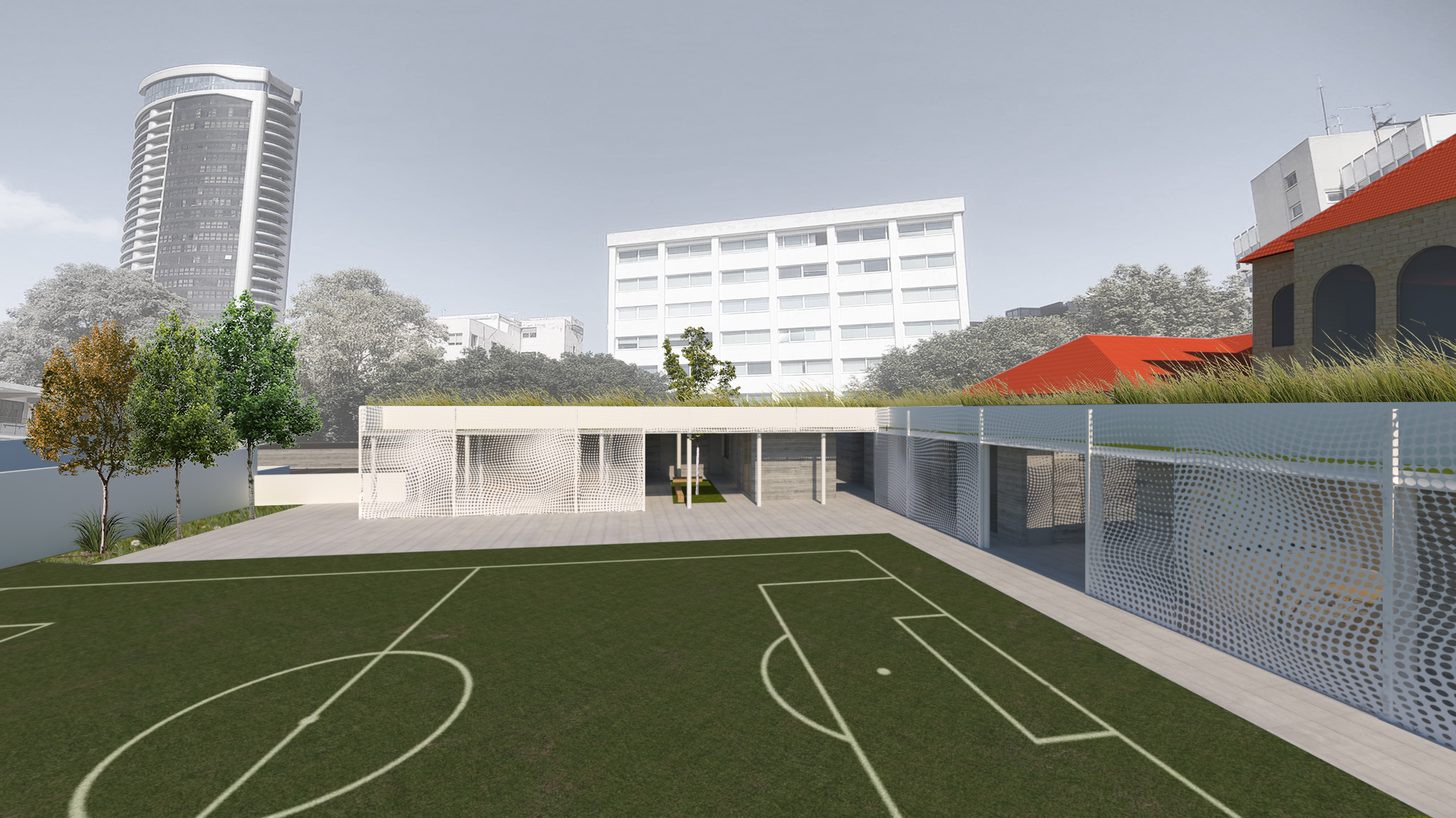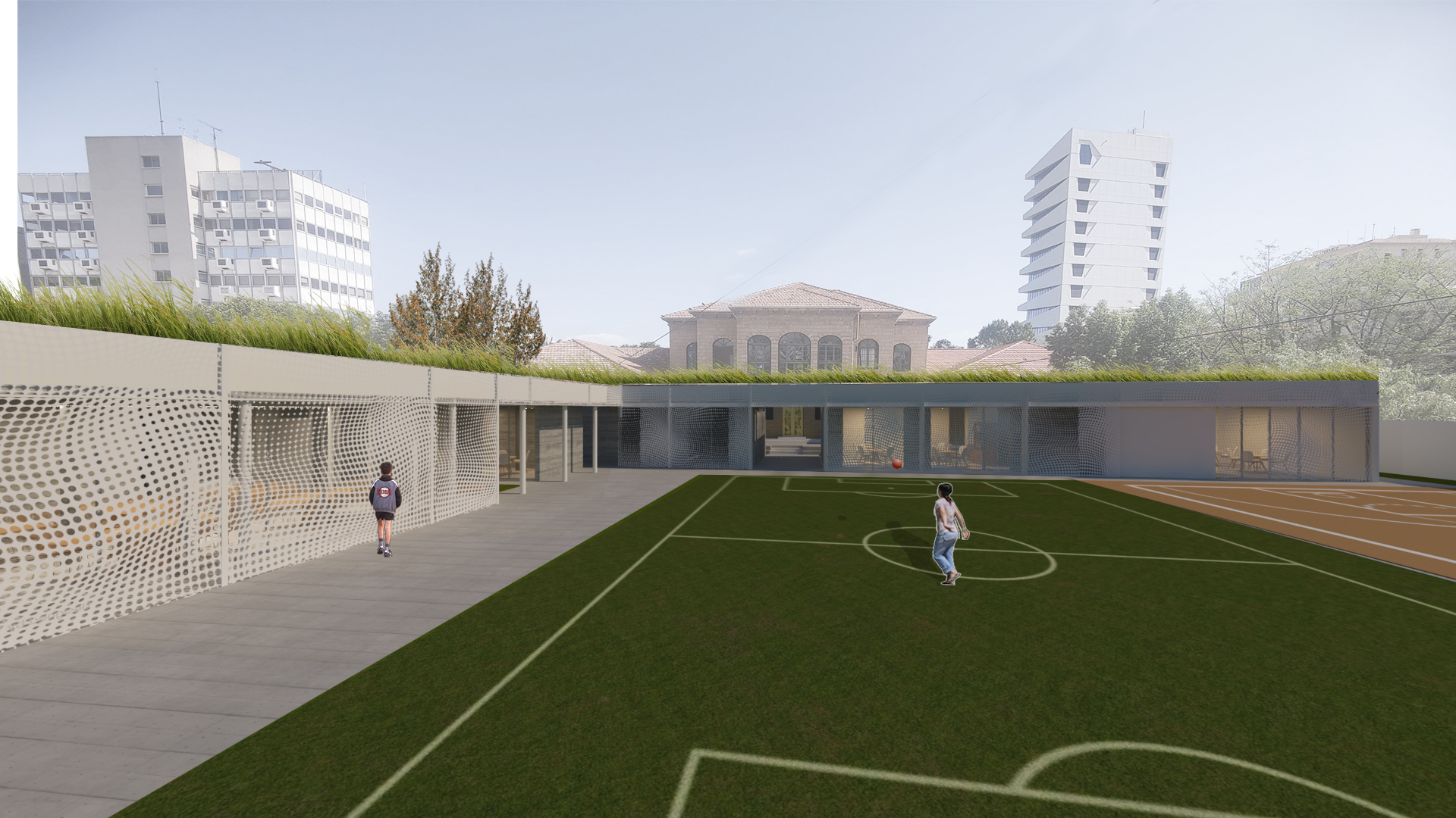 κύριο ζητούμενο του αγωνοθέτη είναι ο διαχωρισμός των υπαίθριων χώρων των δυο σχολείων προσαρμοσμένων στις ανάγκες της κάθε ηλικίας.